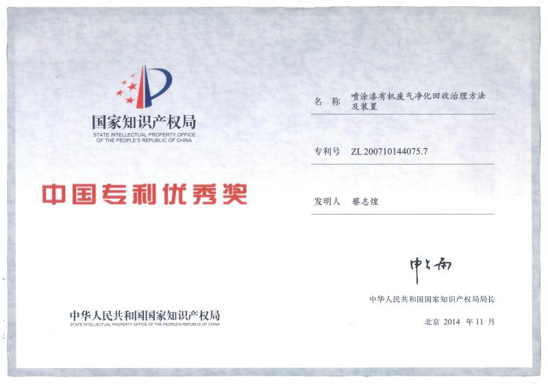 福建省科技型企業、福建省創新性企業、福建省首批科技小巨人、福建省“專精特新”專業化企業,擁有企業研發中心、福建省有機廢氣凈化設備工程技術研發中心;公司產品獲得科技部、環保部、商務部、國家質量監督總局頒發的“國家重點新產品”證書,“中低濃度揮發性有機物回收凈化裝備”被列入《國家鼓勵發展的重大環保技術裝備目錄(2017年版)》;公司核心發明專利分別獲得了中國專利獎優秀獎、福建省專利獎二等獎等專利獎項,其中兩個核心技術分別獲得福建省技術發明獎二等獎、福建省科學技術進步獎二等獎;公司